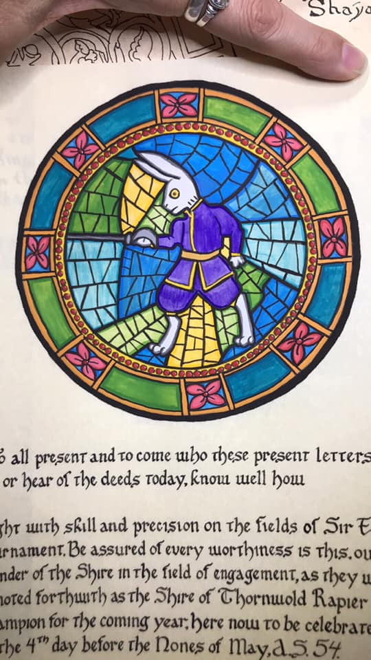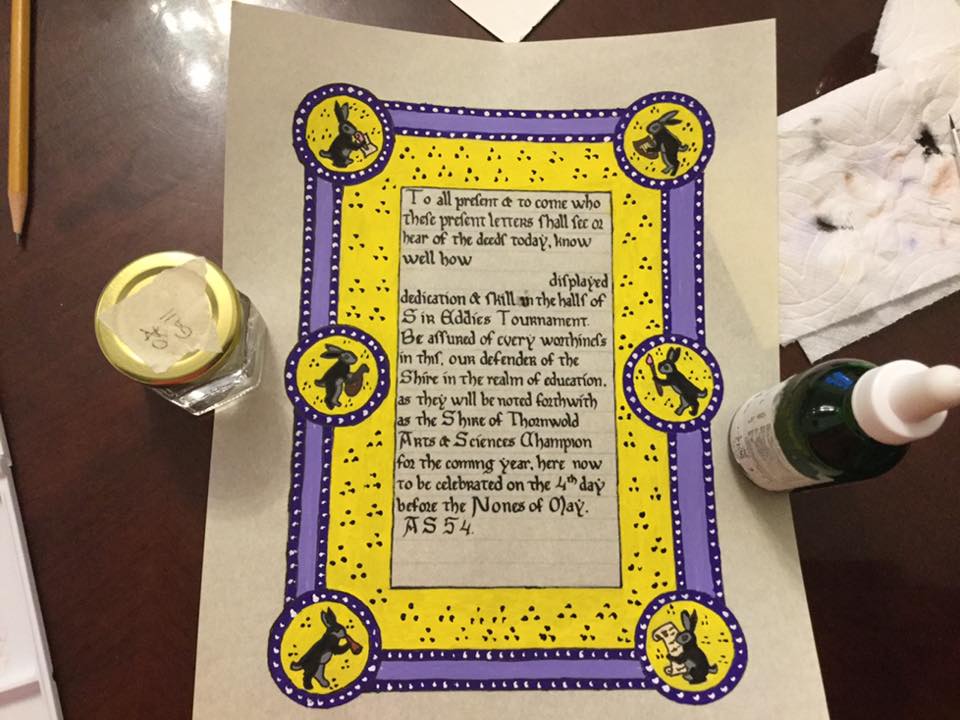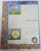 Grand Prize #2: Original Scroll by the Thornwold Scriptorium! This magnificent prize will be made to your specifications. Perhaps you have an award you never received a scroll for, or know someone who would like one? Or perhaps there is a poem or block of text you would like to have illuminated? Our Scribes are here to make this a reality for you!
